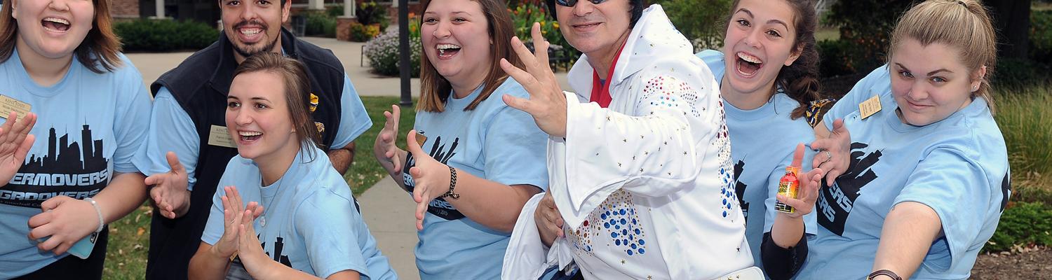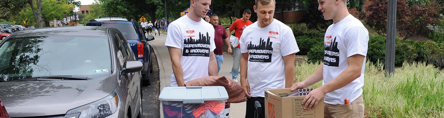 At the beginning of the school year each August, faculty, staff and students volunteer with the university’s Movers and Groovers program to help incoming freshmen move into their new university housing.