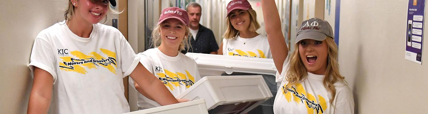 More than 1,000 volunteers from the community welcomed and assisted new students as they moved into their residence halls on freshman move-in day, Sunday, Aug. 18. The annual community program, known as Movers and Groovers, is coordinated by Kent Interhall Council, the student government of the Kent Campus residence halls.